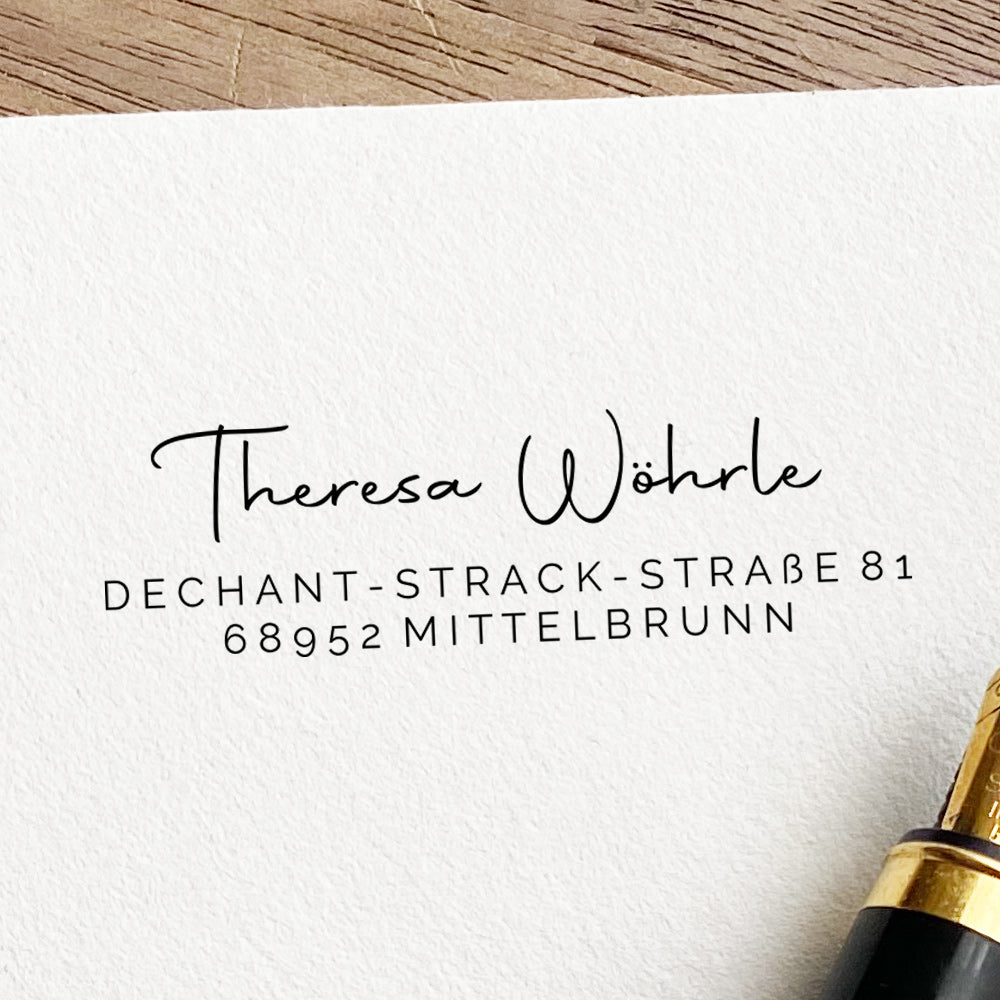Mit unseren personalisierten Adressstempeln verleihst Du Deinen Briefen, Einladungen, Karten und anderer...