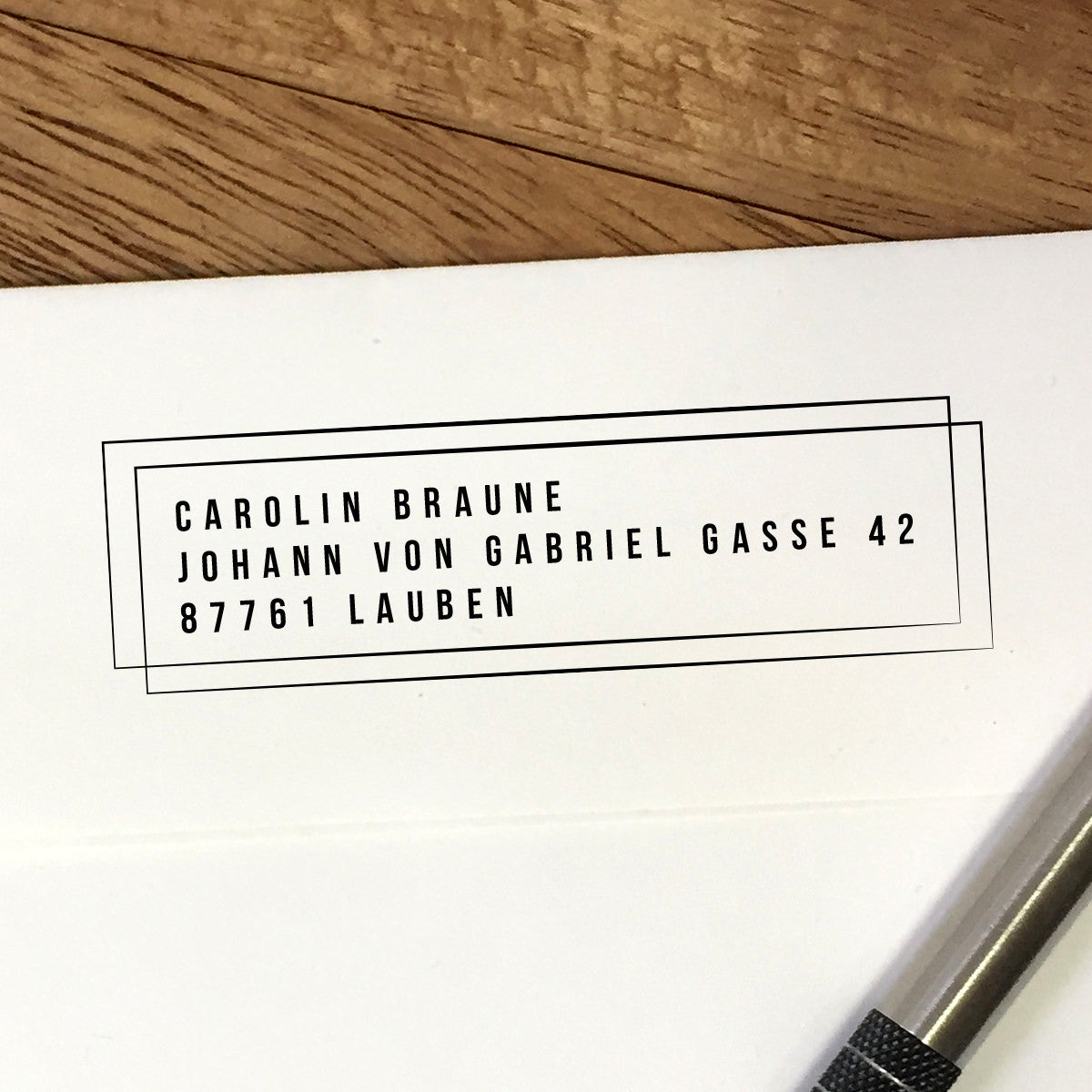 Entdecke die klare Einfachheit von Adressstempeln mit Blockschrift und verleihe Deiner Korrespondenz...