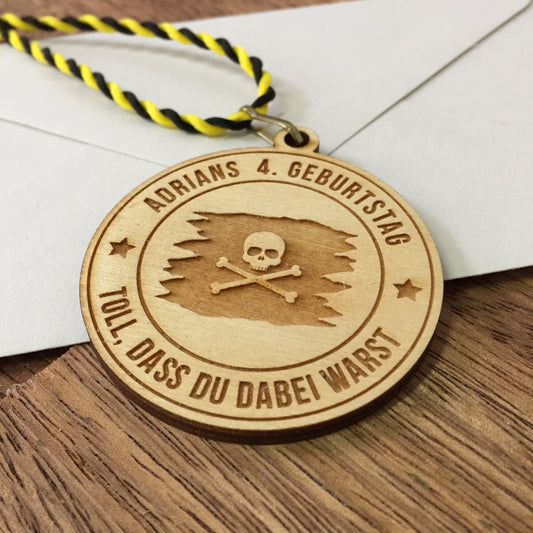 6+ Holzmedaillen "Piratenflagge" als Gastgeschenk
