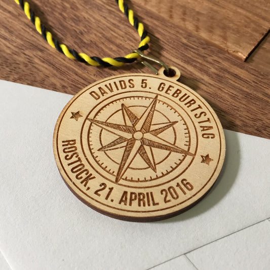 6+ Holzmedaillen "Kompass" als Gastgeschenk