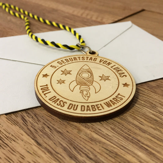 6+ Holzmedaillen "Weltall" als Gastgeschenk