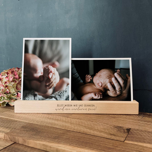 Personalisierter Foto- und Kartenhalter aus Holz - 30 cm