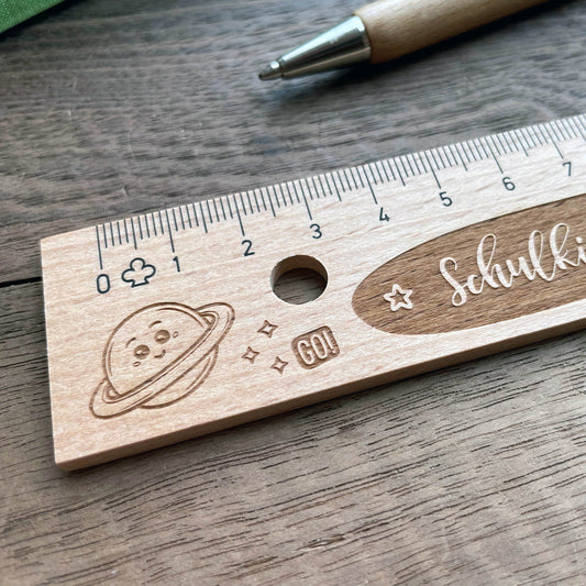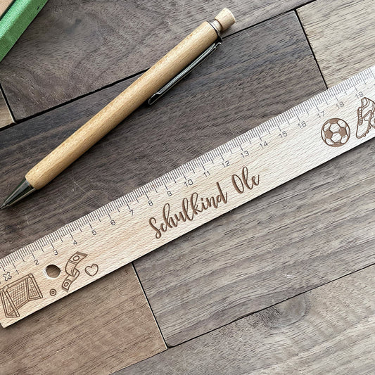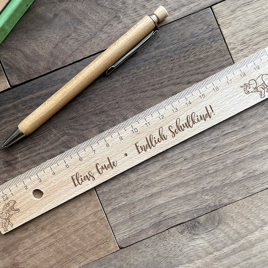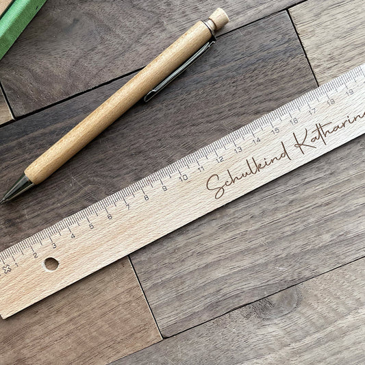 Holzlineal mit personalisierter Gravur - Schulzeugs
