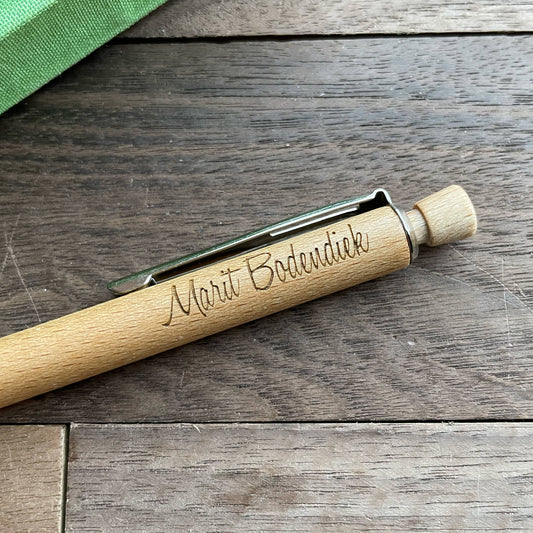 Kugelschreiber aus Buchenholz mit persönlicher Gravur
