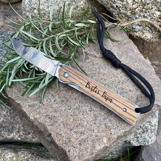 Edles Taschenmesser mit Klinge in Damast-Optik und personalisierter Gravur