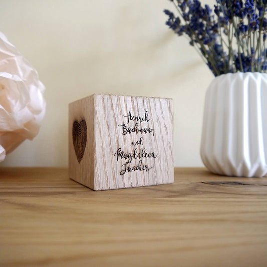 Die dekorativen Holzwürfel sind eine charmante Möglichkeit, das Hochzeitsgeschenk zu individualisieren. Diese Würfel können mit den Namen des Brautpaares und dem Hochzeitsdatum graviert werden. Sie sind nicht nur eine schöne Dekoration für das gemeinsame Zuhause, sondern auch ein symbolisches Geschenk, das die Liebe und Verbundenheit des Paares widerspiegelt.