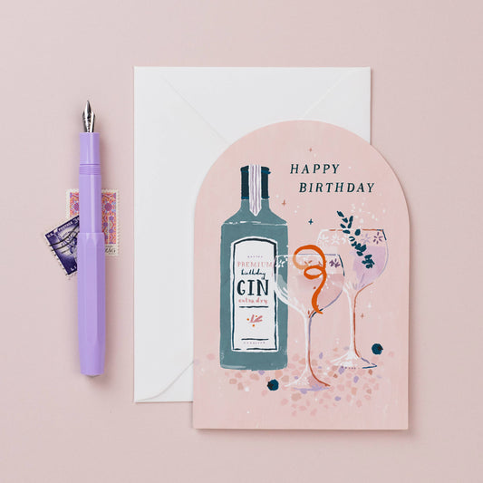 Geburtstagskarte "Happy Birthday" mit Gin-Flasche und Gläsern