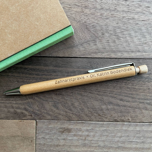 Personalisierbarer Kugelschreiber aus Buchenholz