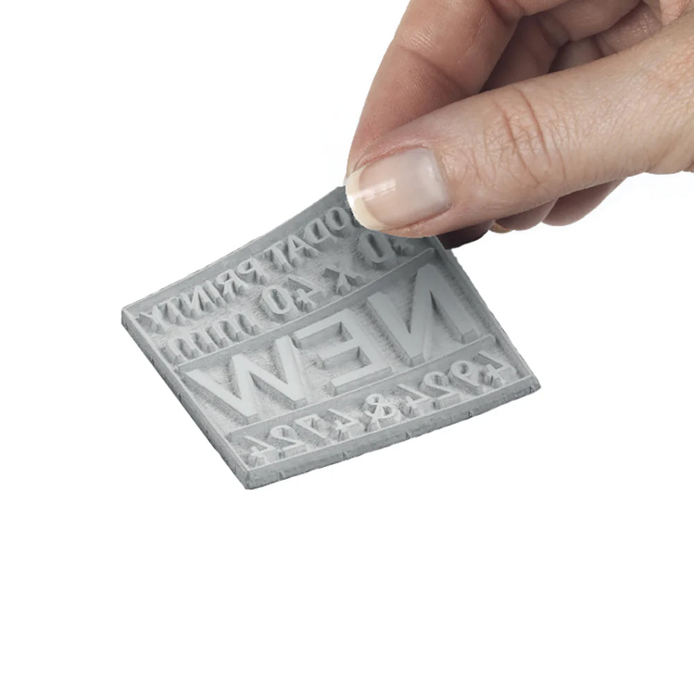 Ideal für schnelles, wiederholtes Stempeln. Das integrierte Stempelkissen mit schwarzer Farbe reicht für tausende Abdrucke und kann einfach gewechselt werden.