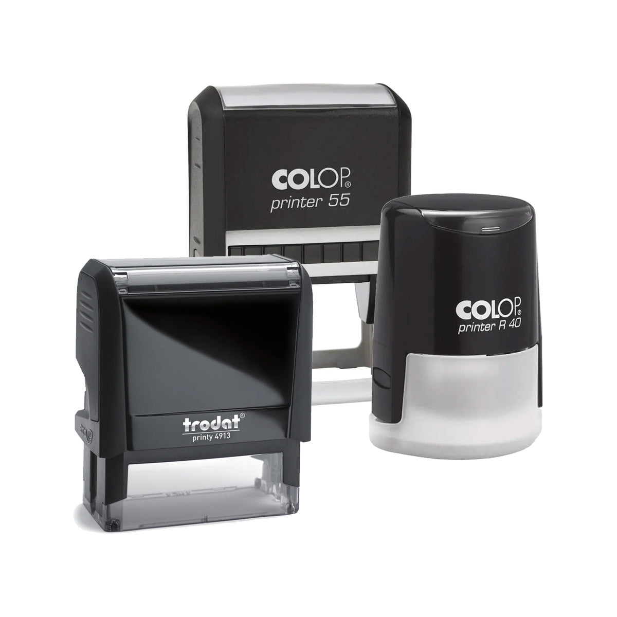 Für unsere selbstfärbenden Stempel setzen wir auf die in Europa gefertigten Gehäuse der Premium-Hersteller Trodat und Colop.