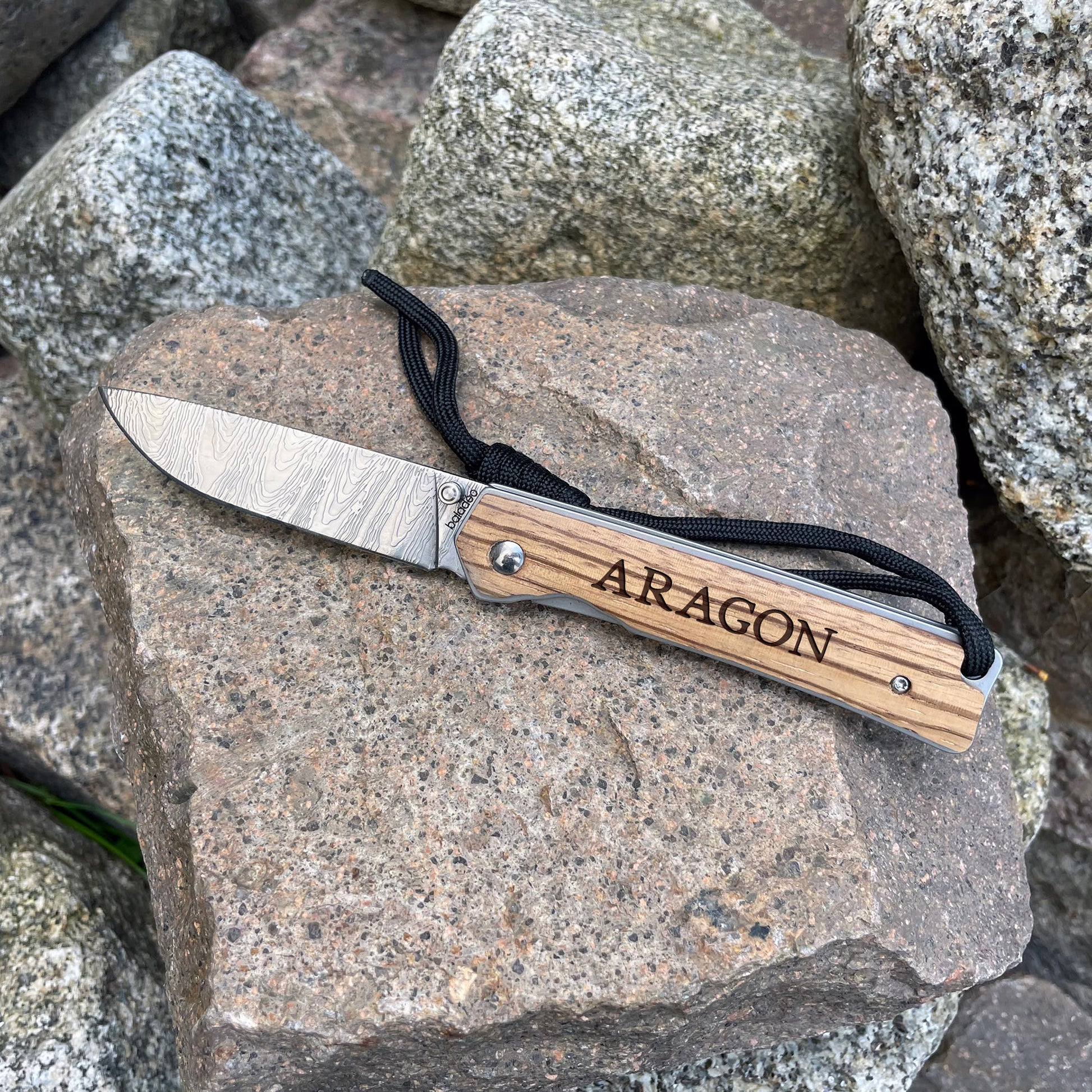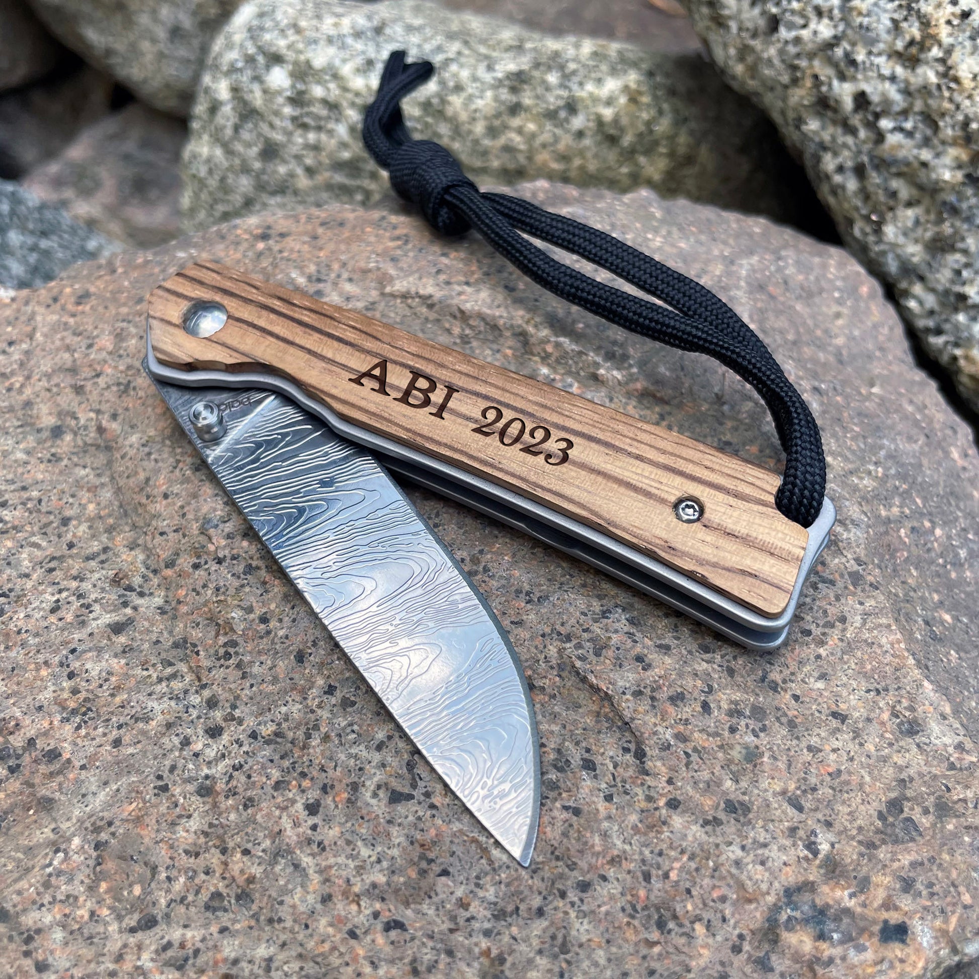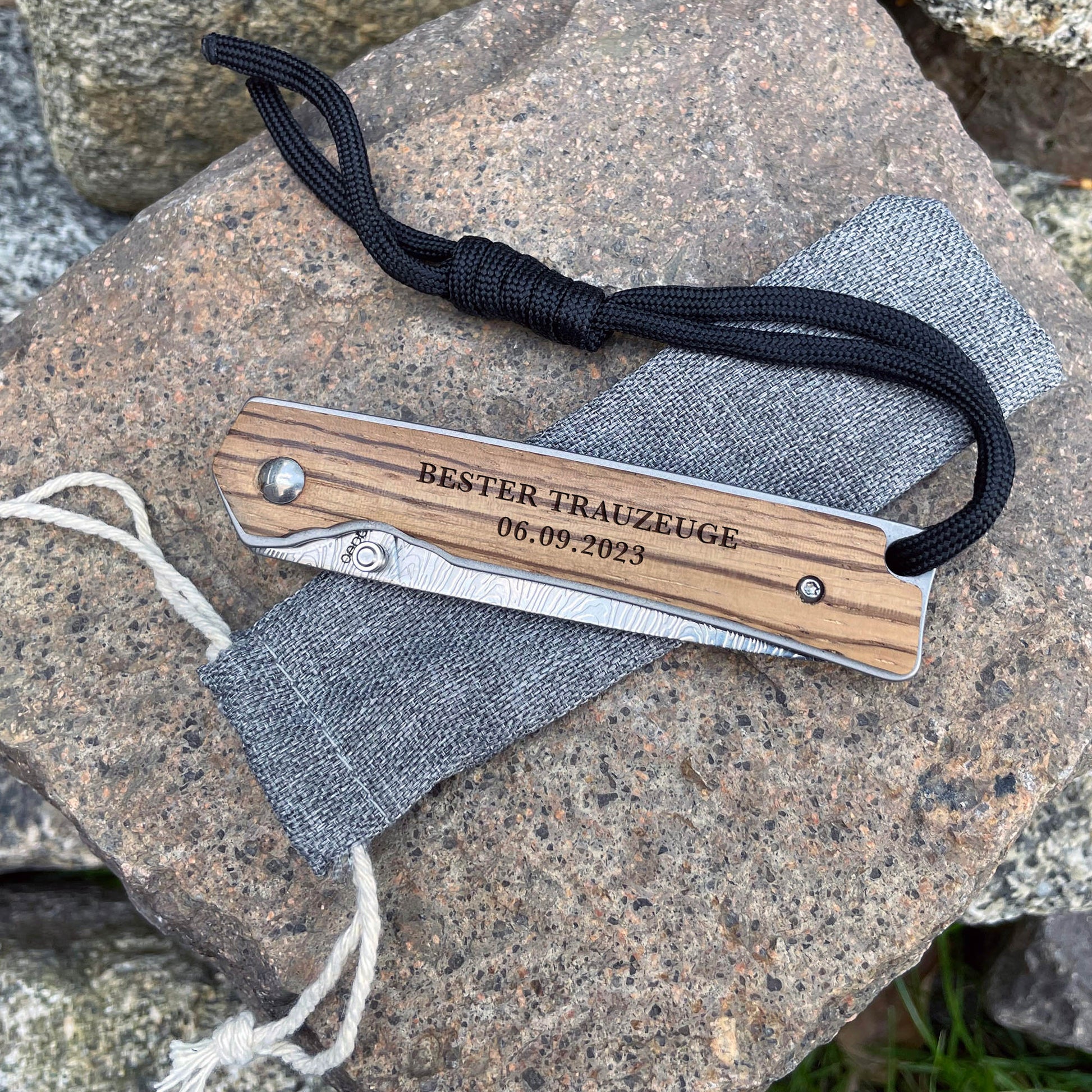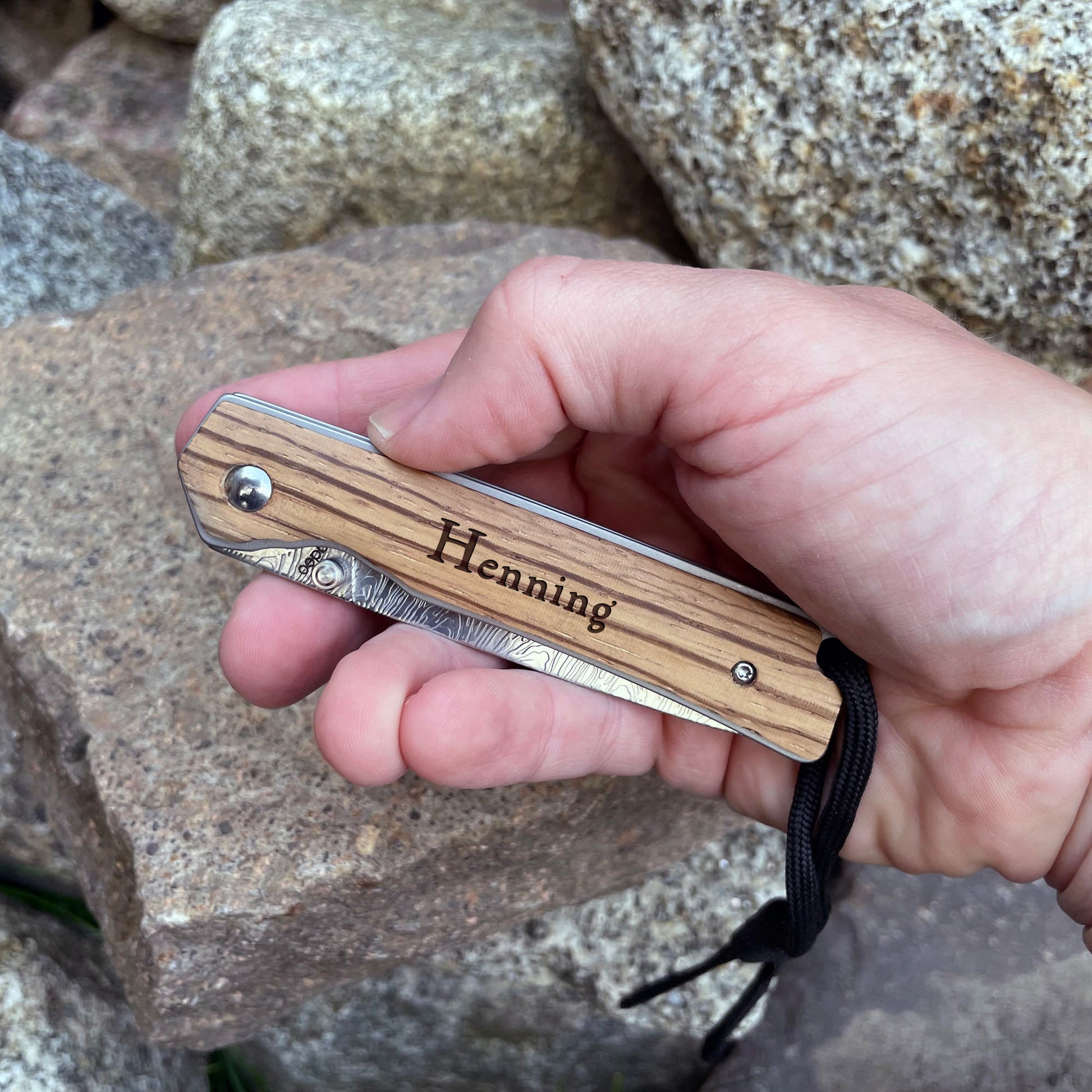 Edles Taschenmesser mit Klinge in Damast-Optik und personalisierter Gravur