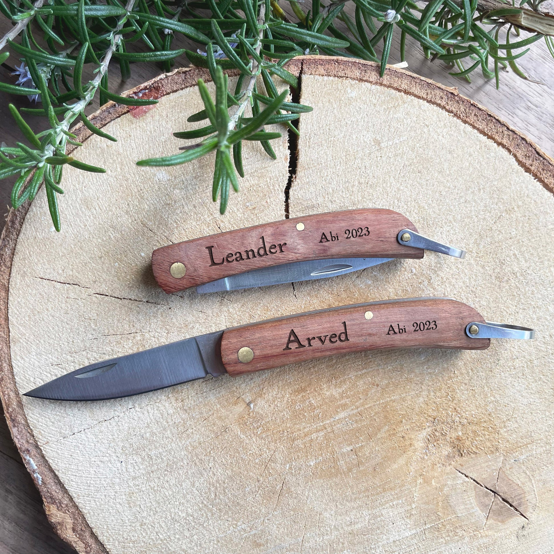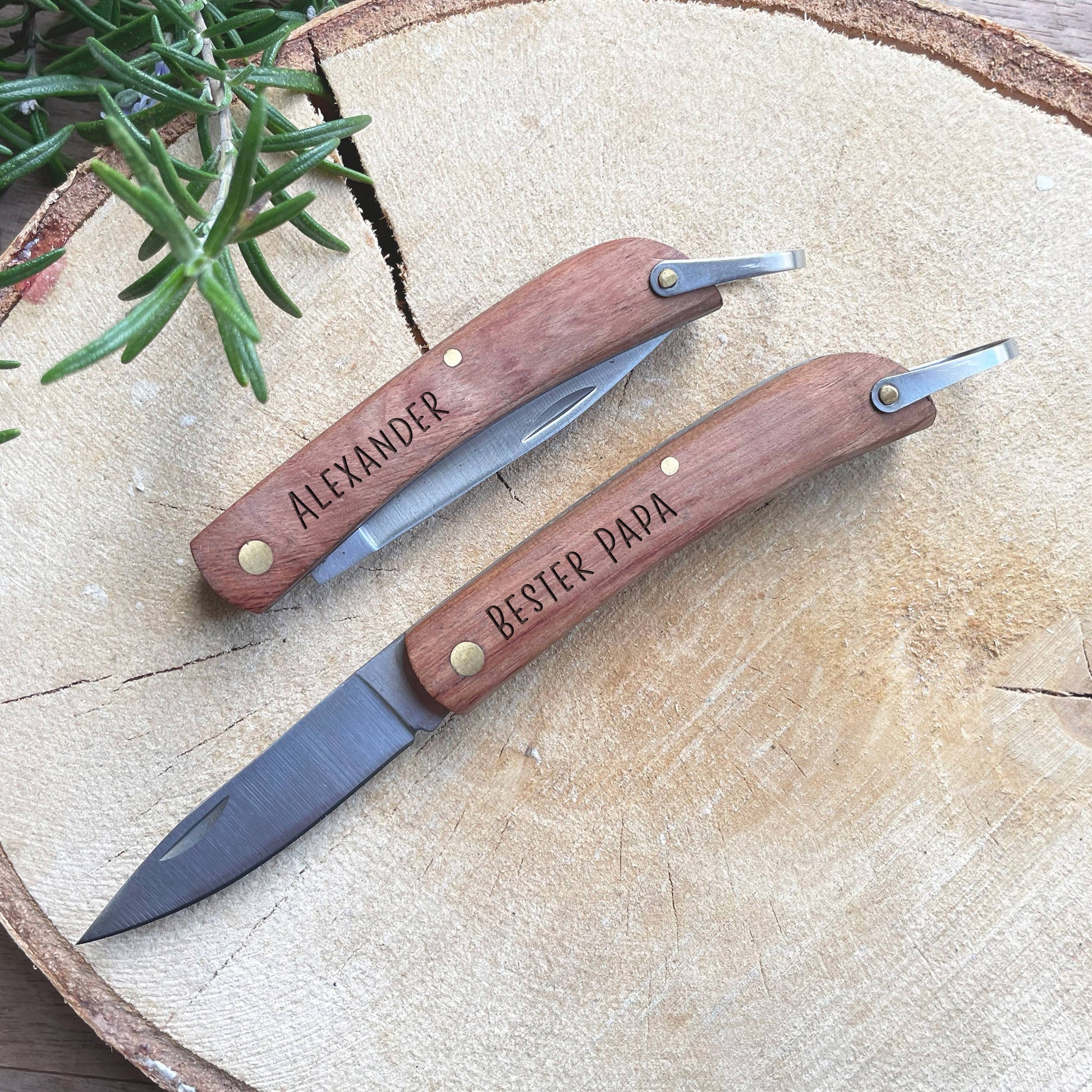 Auch als Geschenk zum Vatertag mit einem Text wie "Bester Papa" auf der Vorderseite und dem Namen des Empfängers auf der Rückseite eignet sich dieses Taschenmesser mit Gravur hervorragend.