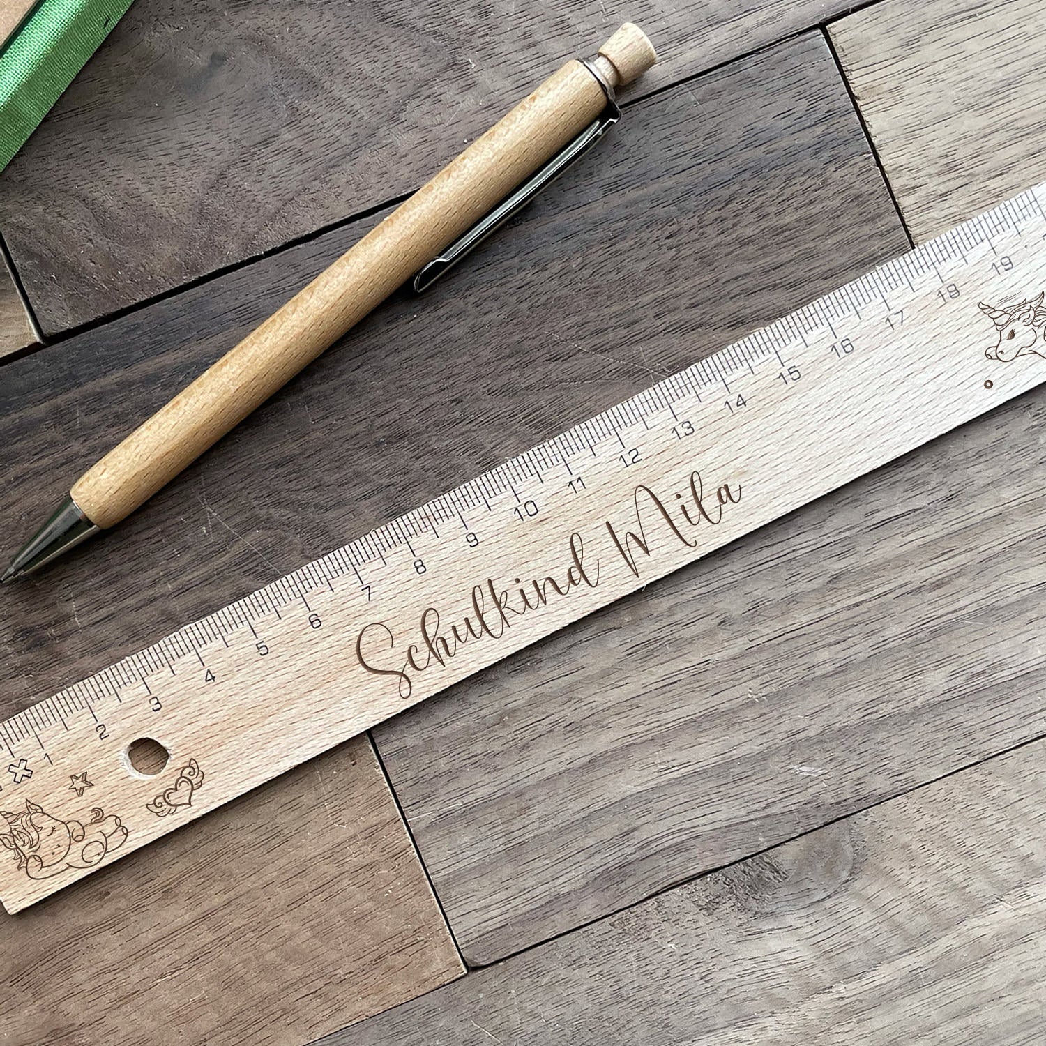Personalisiertes Holzlineal für einen gelungenen Start in der Schule.