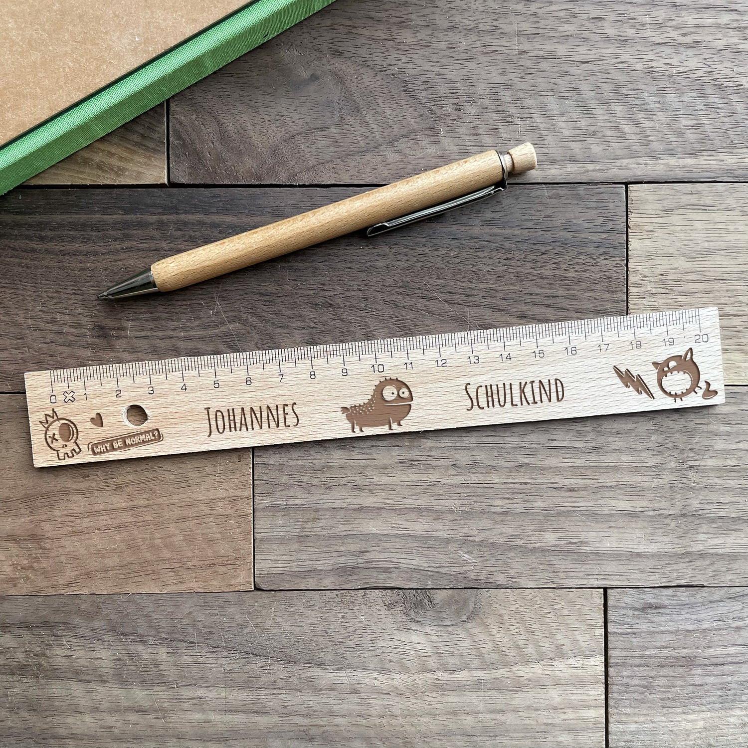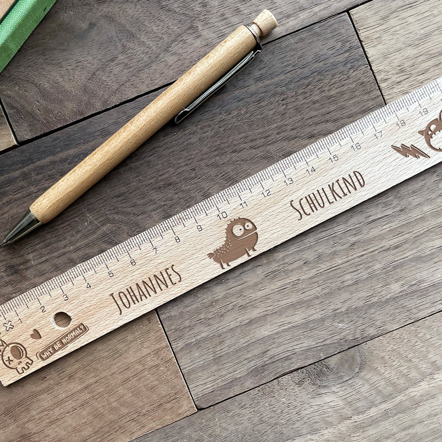 Holzlineal mit personalisierter Gravur - Monster