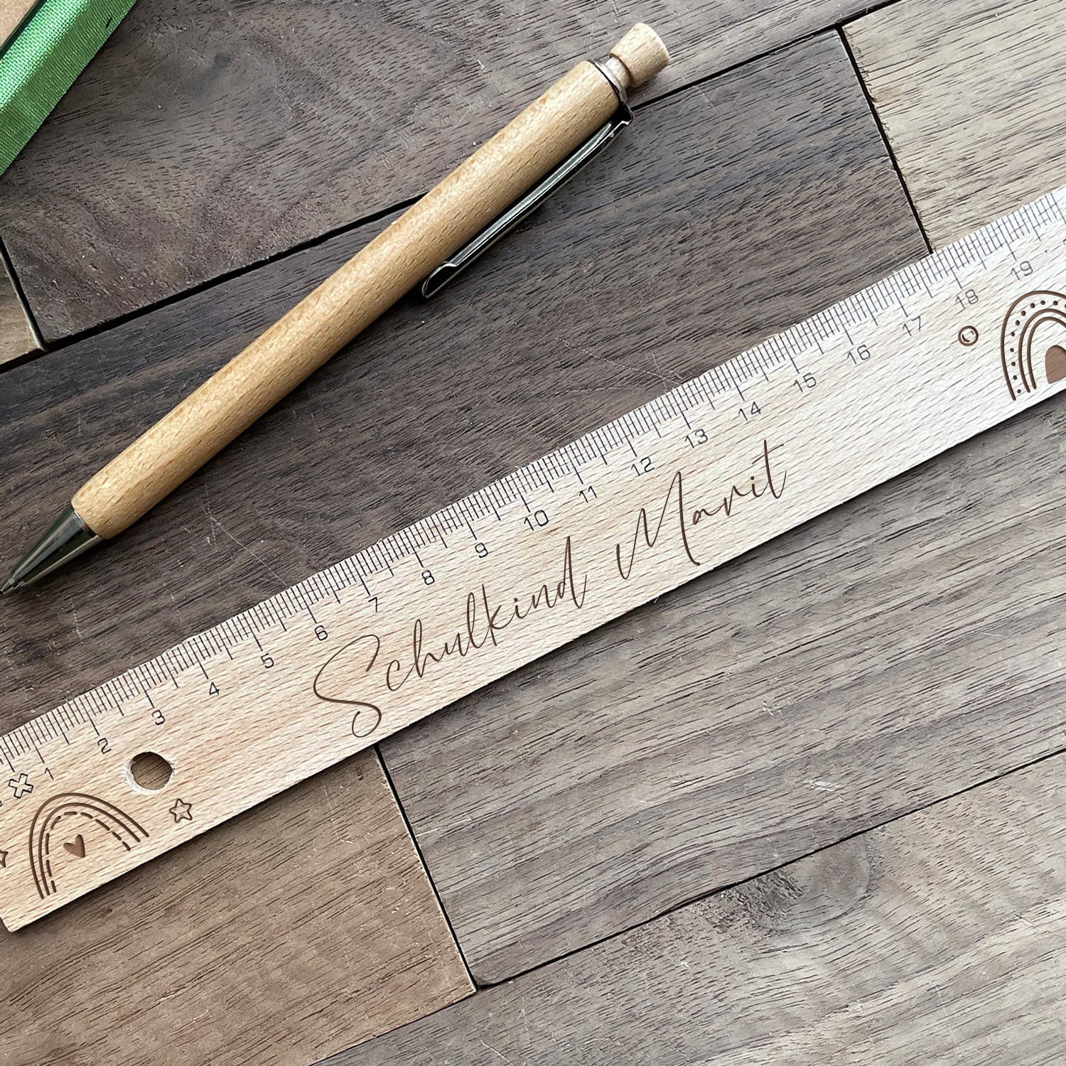 Personalisiertes Holzlineal für einen gelungenen Start in der Schule.