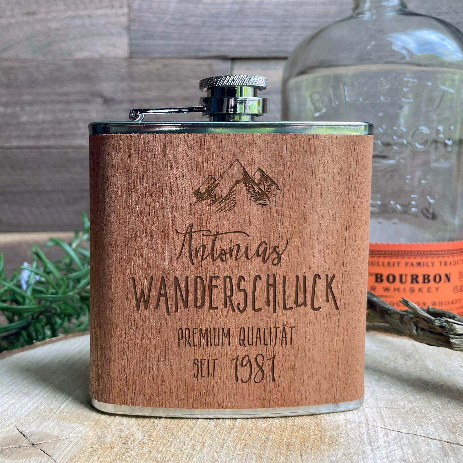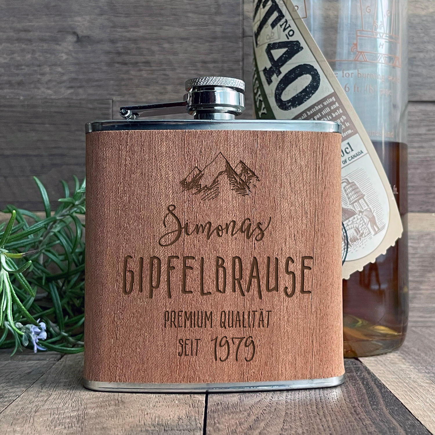 Personalisierter Flachmann mit Holzlaminat - Gipfelbrause