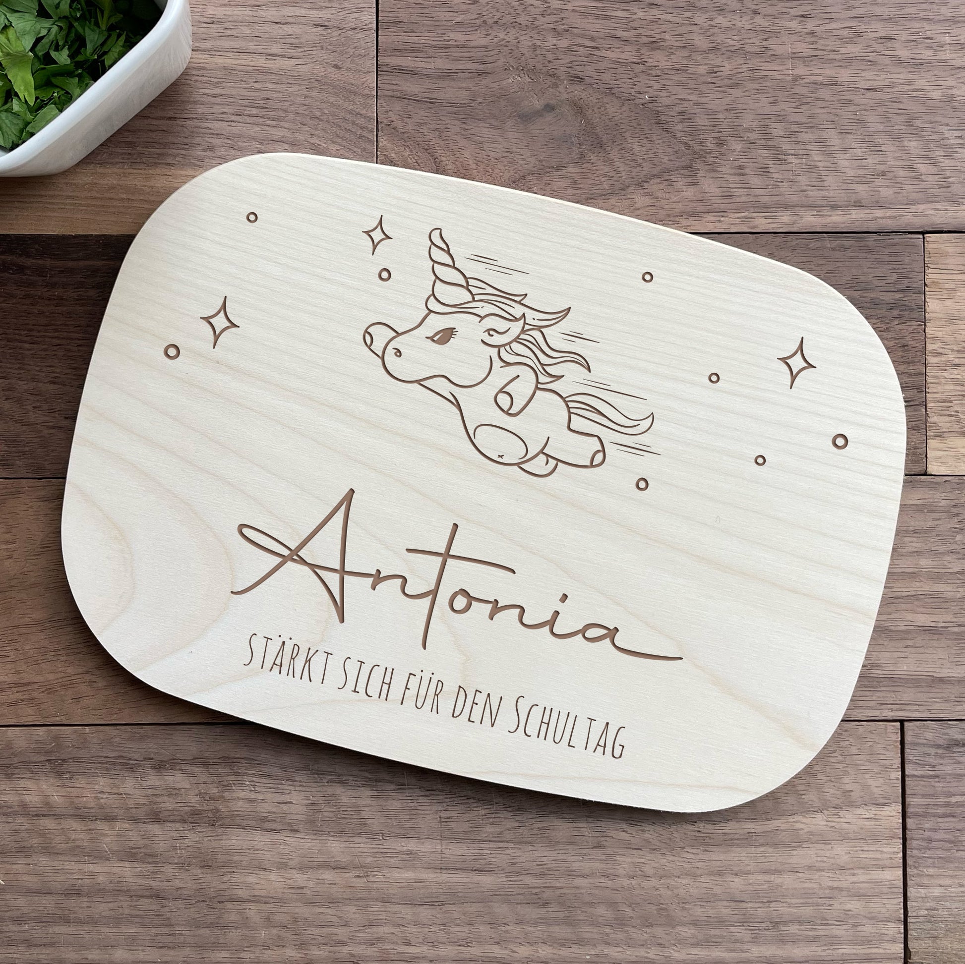 Personalisiertes Frühstücksbrettchen - Fliegendes Einhorn