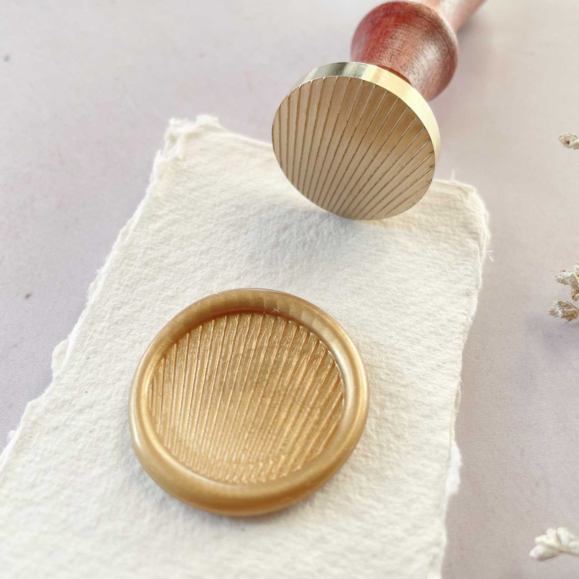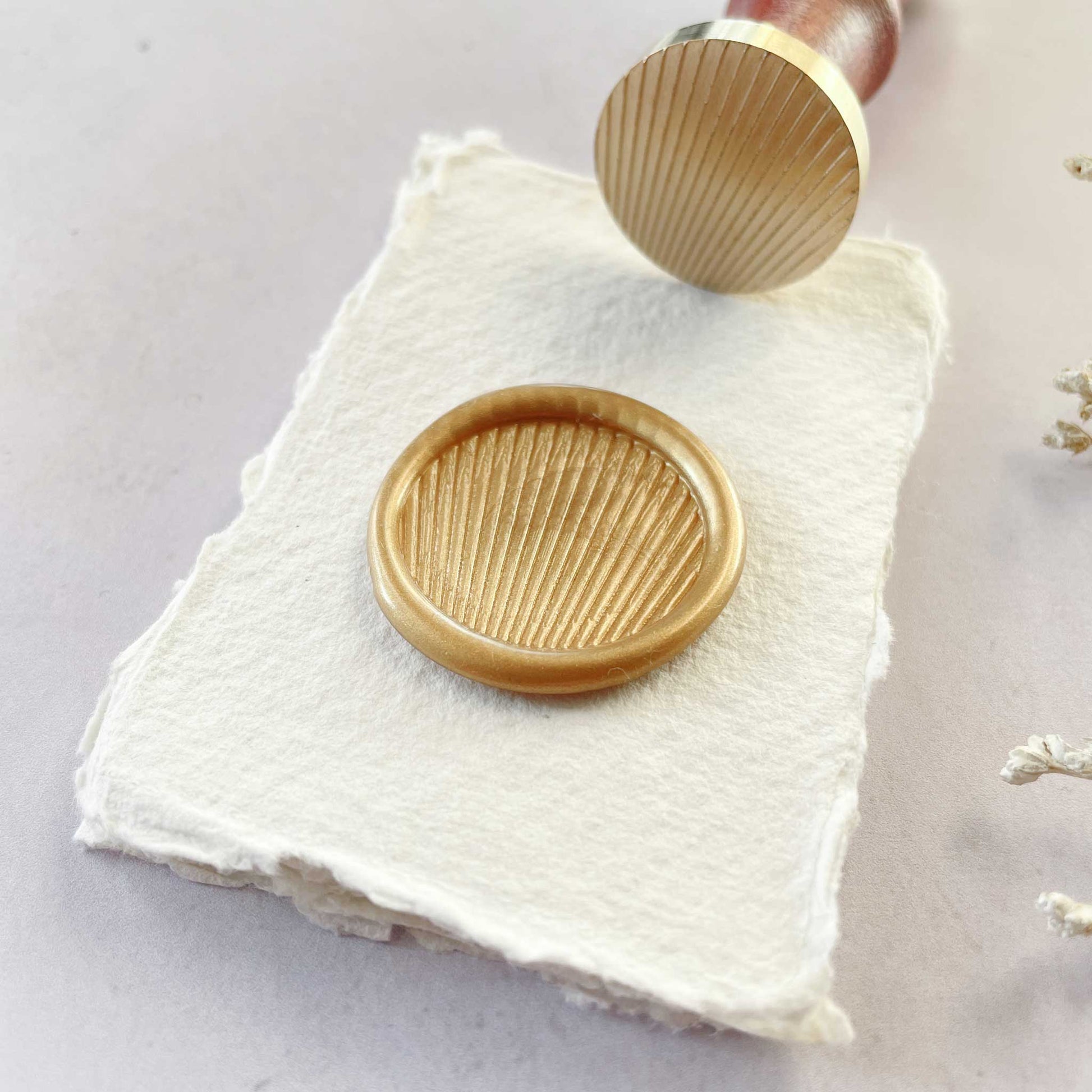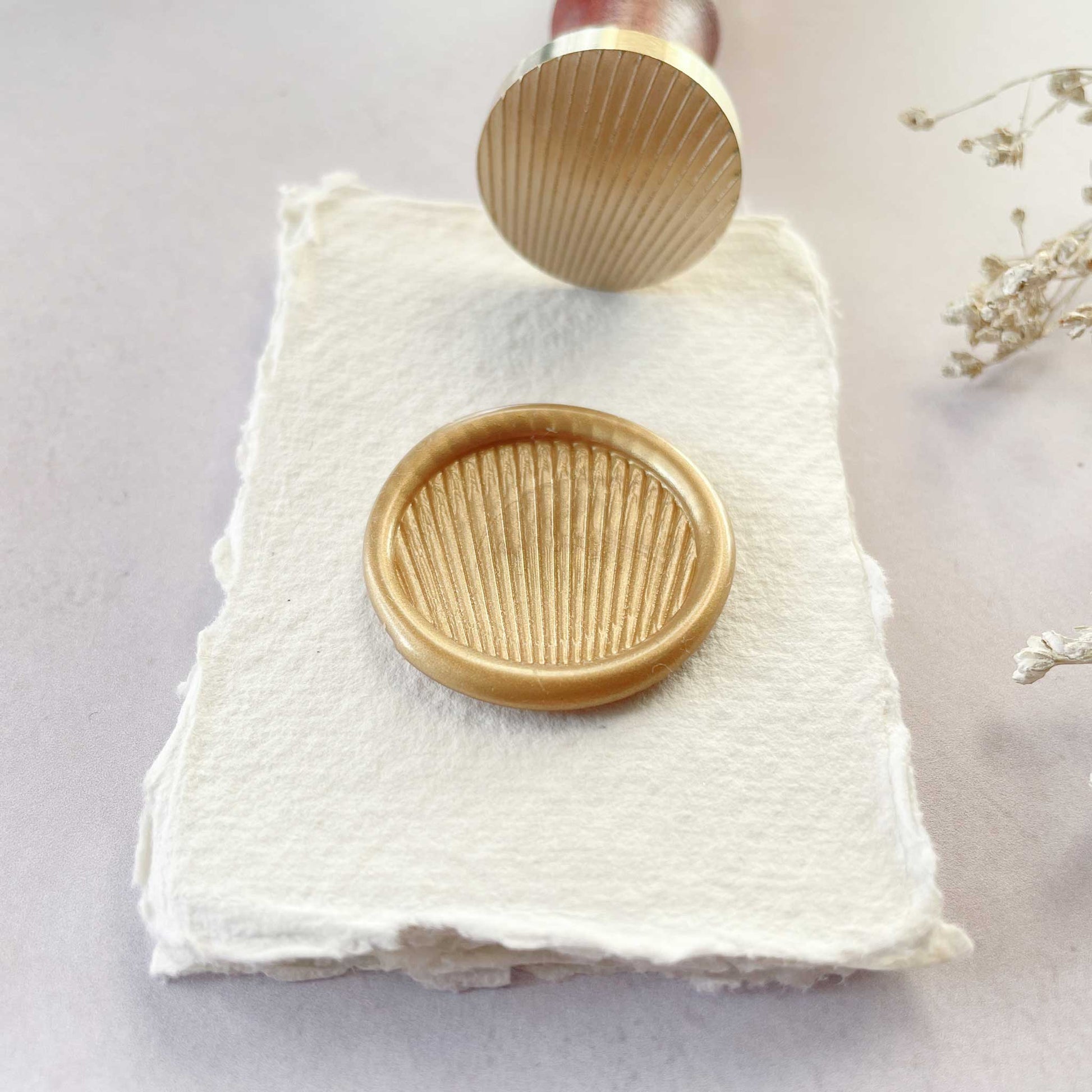 Dieser hochwertige Siegelwachsstempel mit dem Motiv „Art Deco“ bringt den Glamour der 1920er Jahre direkt in deine Papeterie. Die feinen, symmetrischen Linien erinnern an eine stilisierte Muschel und verleihen Einladungen, Karten und Geschenkverpackungen einen edlen, zeitlosen Look – perfekt für Vintage-Themen, elegante Events oder luxuriöse Geschenkverpackungen.