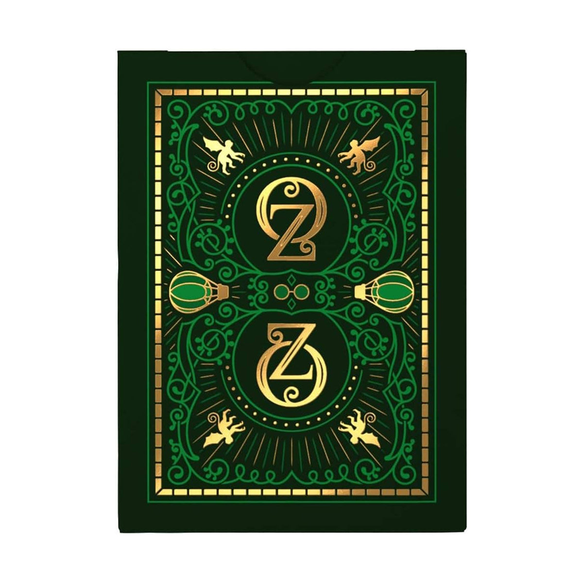 Die kunstvoll illustrierten Kartenrückseiten zeigen fliegende Affen und den Heißluftballon des Zauberers – detailverliebt und voller Fantasie. Die Verpackung mit glänzender Goldfolie funkelt wie die legendäre Smaragdstadt und macht das Deck zu einem echten Blickfang.